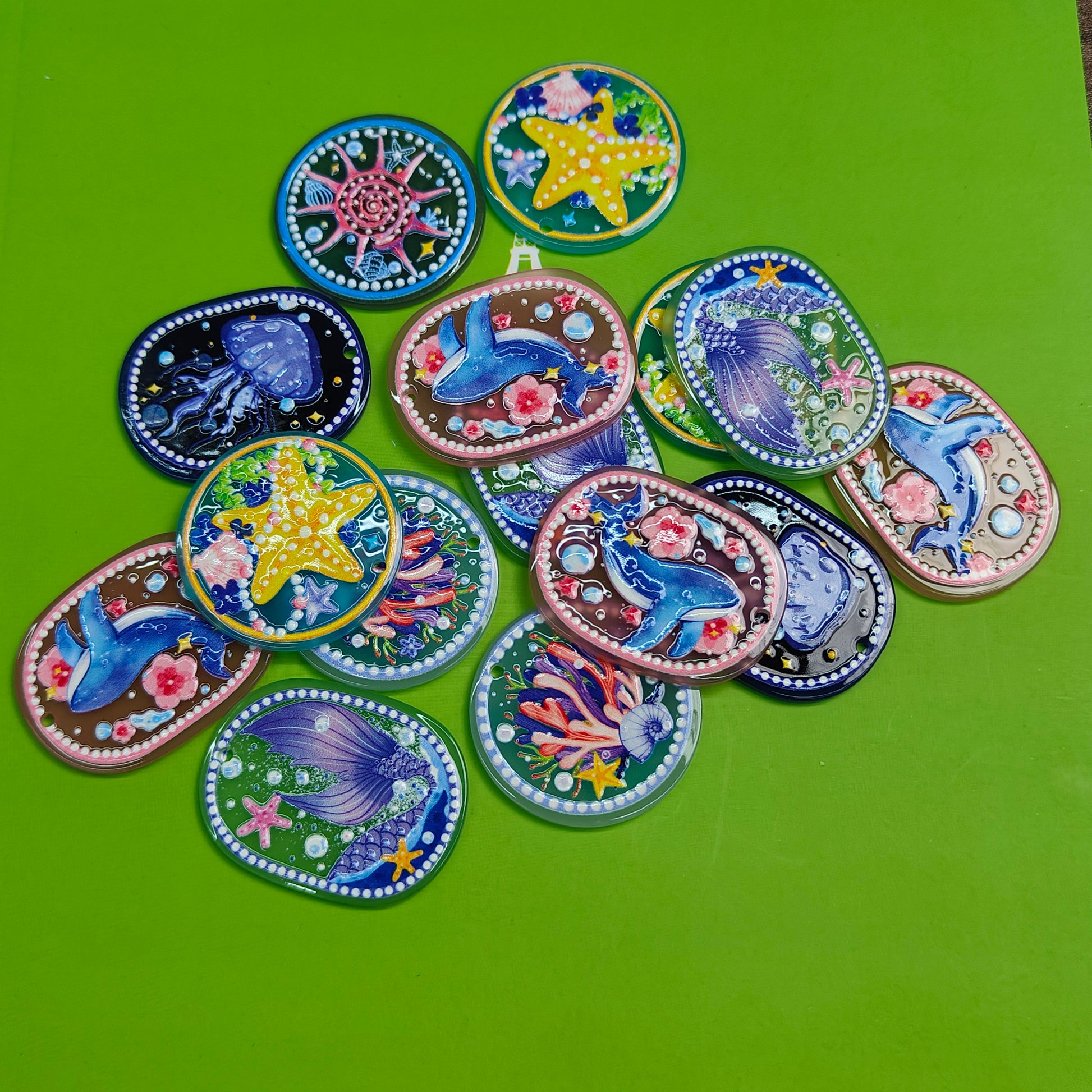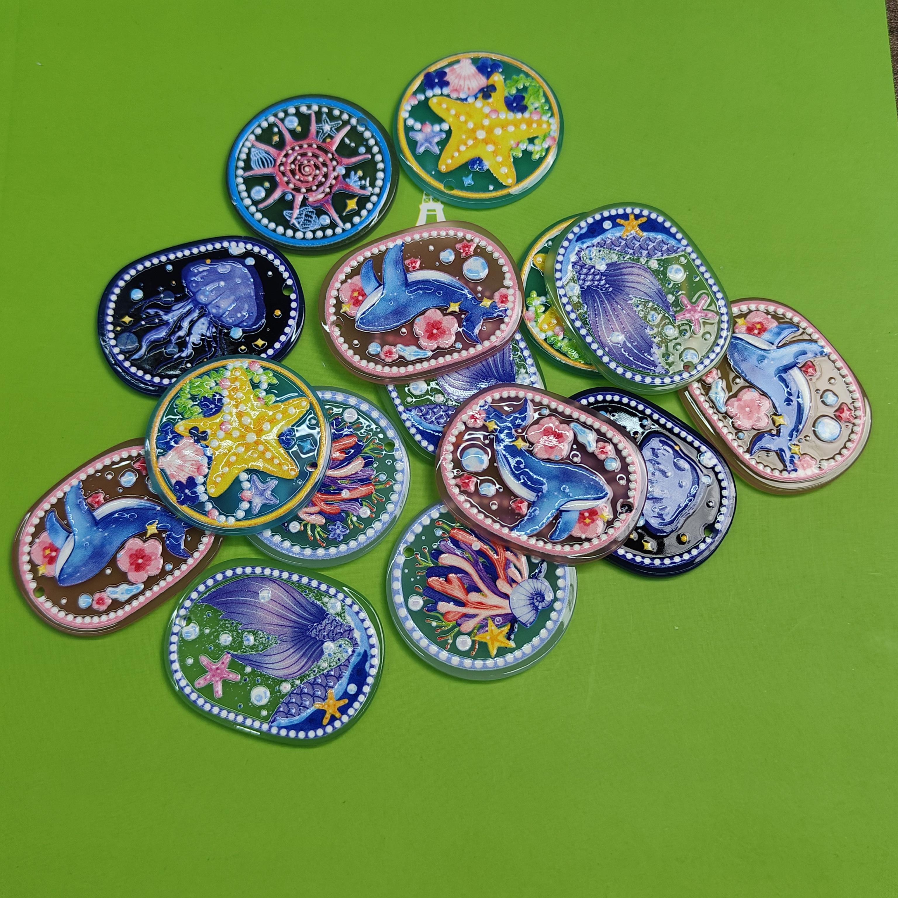 DIY Hand Painted Acrylic Pendant Flower Ocean Natural Acrylic Pendant with Holes
