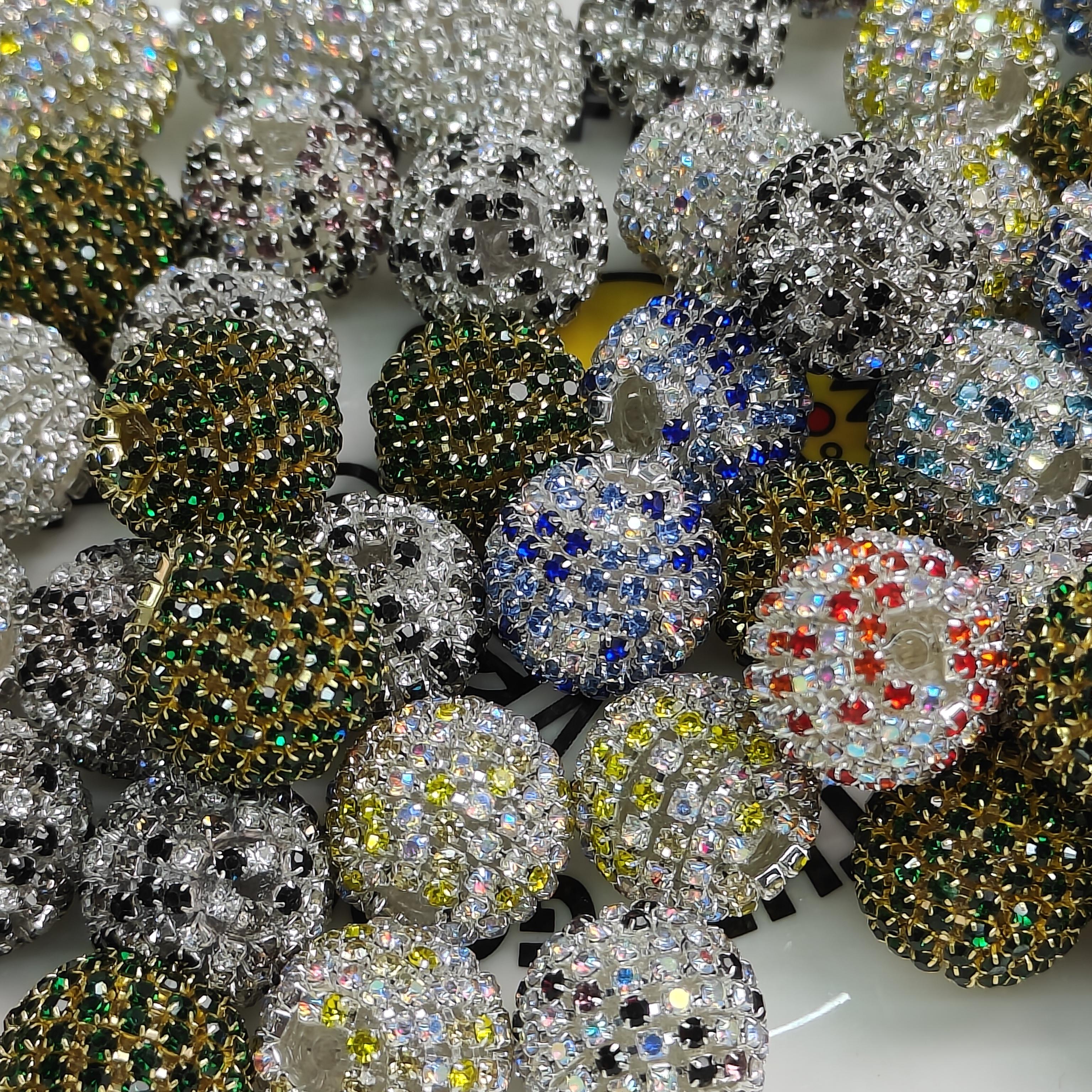 DIY Metal Beads Rhinestone Sparkling Dark Green 18mm Beads